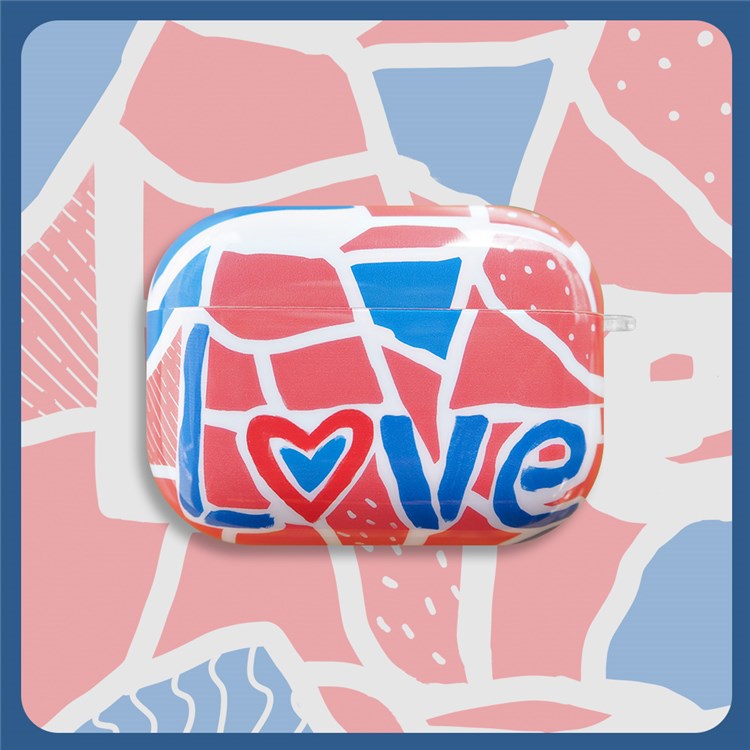 For Apple AirPods Pro Stylish Pattern IMD Protective Cover Earphone Charging Box Shockproof TPU Case - Color Blocks/Love