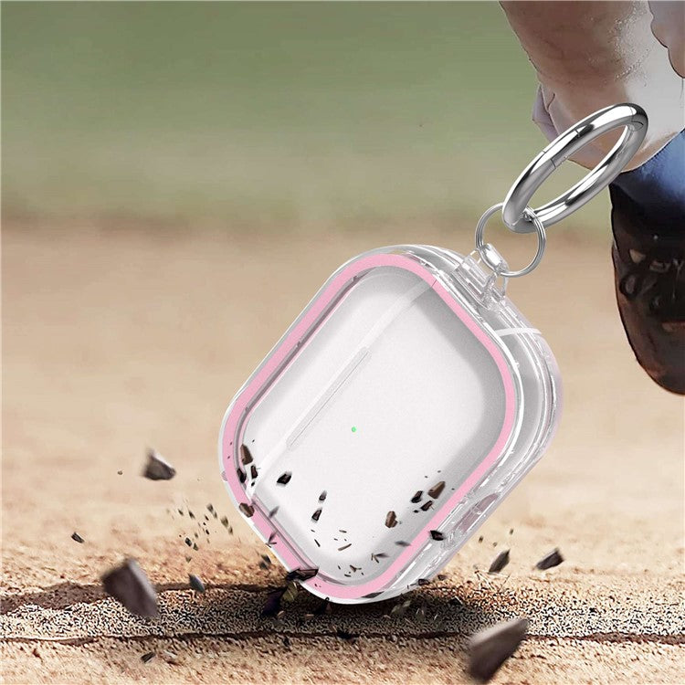For Apple AirPods Pro Transparent Dual-color Design PC+TPU Drop-proof Bluetooth Earphone Case Shockproof Charging Box - Pink
