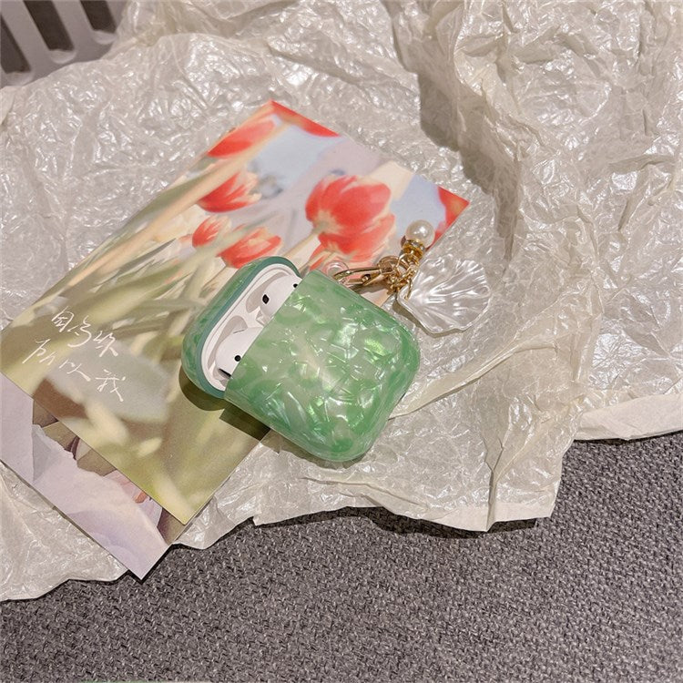 For Apple AirPods with Charging Case (2016)/(2019)/AirPods with Wireless Charging Case (2019) Bluetooth Earphone Charging Case Shell Grain TPU Anti-scratch Protective Cover with Shell Shape Pendant