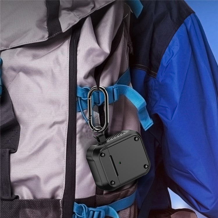 For Apple AirPods with Charging Case (2016) / (2019) / AirPods with Wireless Charging Case (2019) Dual-color PC+TPU Earphone Case Anti-drop Cover with Carabiner - Purple