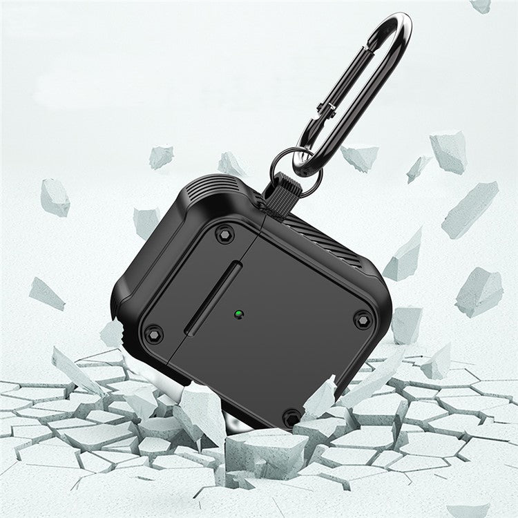 For Apple AirPods with Charging Case (2016) / (2019) / AirPods with Wireless Charging Case (2019) Dual-color PC+TPU Earphone Case Anti-drop Cover with Carabiner - Red