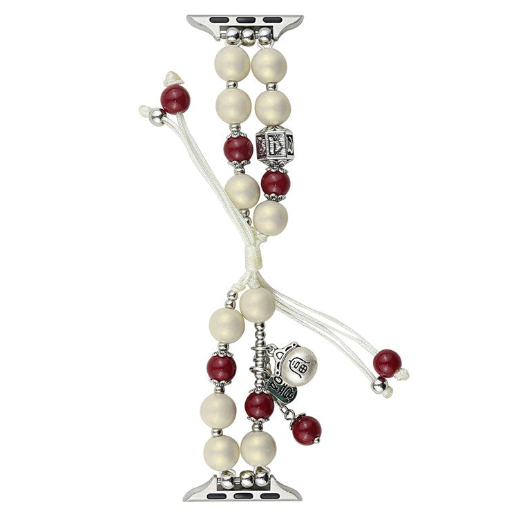 For Apple Watch 10 46mm / Ultra 2 / Ultra 49mm / 9 8 7 45mm / SE (2023) SE (2022) SE 6 5 4 44mm / 3 2 1 42mm Artificial Pearl Strap - Beige / 2-Chain