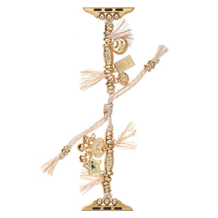 For Apple Watch 10 46mm / Ultra 2 / Ultra 49mm / 9 8 7 45mm / SE (2023) SE (2022) SE 6 5 4 44mm / 3 2 1 42mm Peace Lock Pendant Woven Rope Strap - Apricot