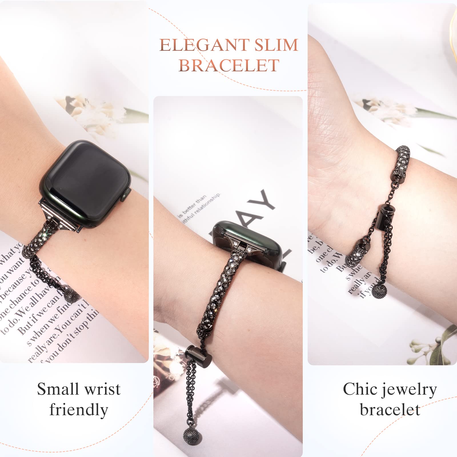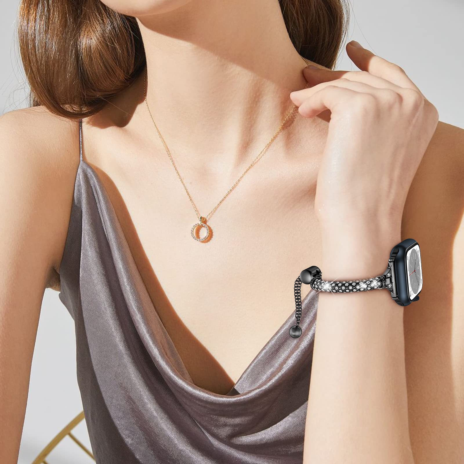 for Apple Watch SE / SE (2022) 40mm / Series 7 / 8 41mm / 4 / 5 / 6 40mm / 1 / 2 / 3 38mm Metal Stretch Jewelry Watch Strap Rhinestone Decorated Wristband for Women Girls - Black