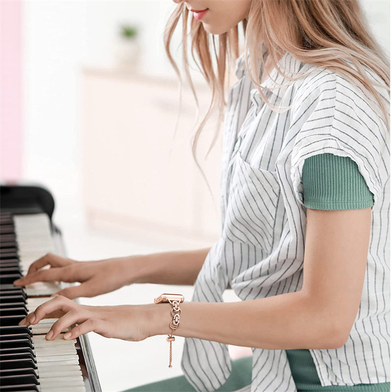 for Apple Watch Series 1 / 2 / 3 38mm / SE / SE(2022) / Series 4 / 5 / 6 40mm / Series 7 41mm / Series 8 41mm Stainless Steel Stylish Hollow Out Smart Watch Band Bracelet - Rose Gold