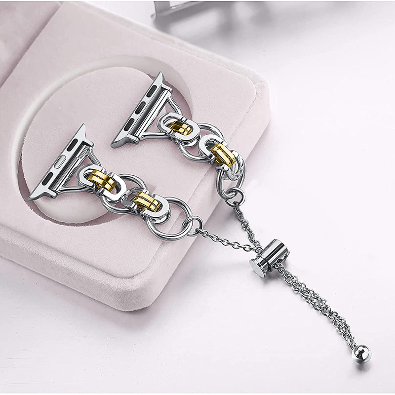 for Apple Watch Series 1 / 2 / 3 38mm / SE / SE(2022) / Series 4 / 5 / 6 40mm / Series 7 41mm / Series 8 41mm Stainless Steel Stylish Hollow Out Smart Watch Band Bracelet - Silver and Gold