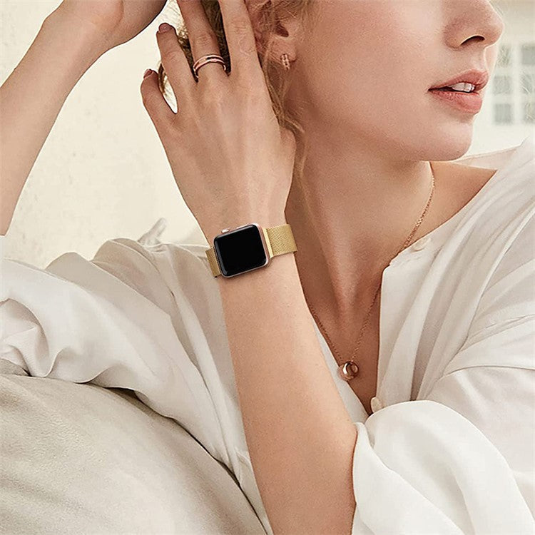 For Apple Watch Series 10 42mm / 9 8 7 41mm / 6 5 4 SE SE (2022) SE (2023) 40mm / 3 2 1 38mm Magnetic Milanese Loop Watch Band Stainless Steel Mesh Strap Replacement - Rose Gold