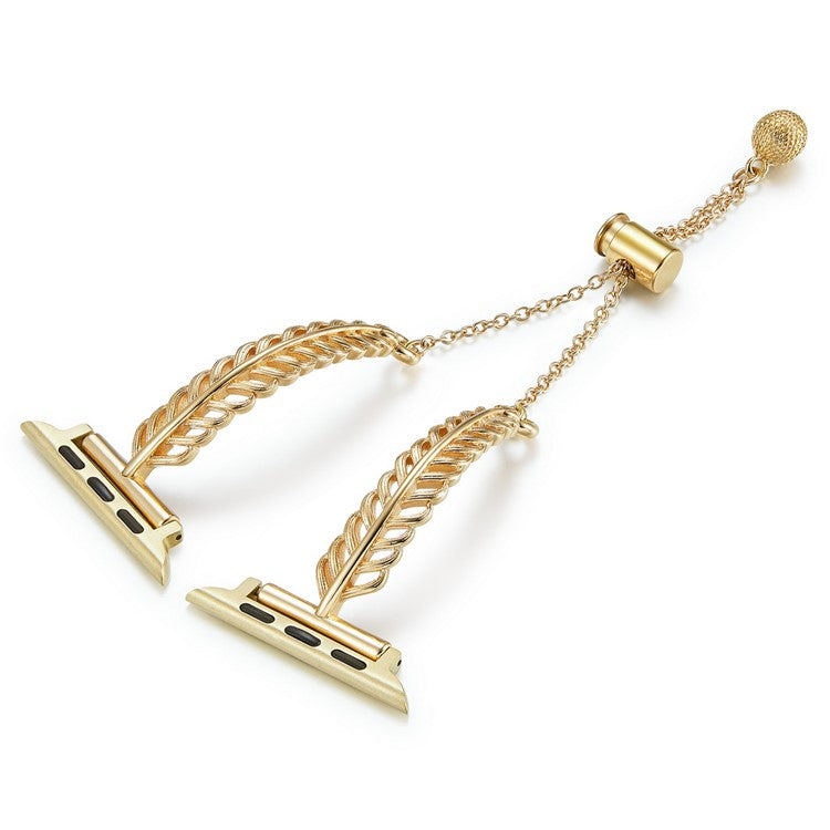 For Apple Watch Series 10 42mm / 9 8 7 41mm / SE (2023) SE (2022) SE 6 5 4 40mm / 3 2 1 38mm Feather Design Wrist Band Copper Watch Strap - Gold