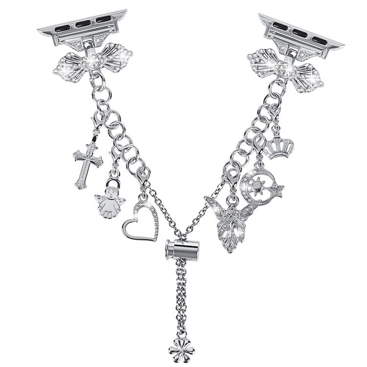 For Apple Watch Series 10 46mm / Ultra 2 Ultra 49mm / Series 9 8 7 45mm / 6 5 4 SE (2023) SE (2022) SE 44mm / 3 2 1 42mm Watch Band Multiple Pendant Design Bracelet Wrist Strap - Silver