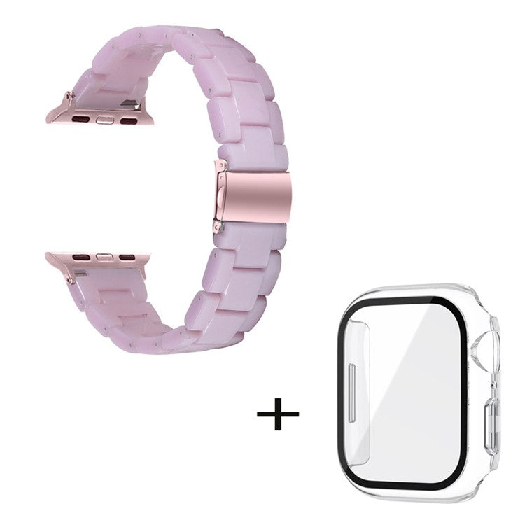 For Apple Watch Series 6 / 5 / 4 / SE / SE (2022) 44mm Replacement Watch Band 3 Beads Resin Wrist Strap with Transparent Watch Case - Light Purple