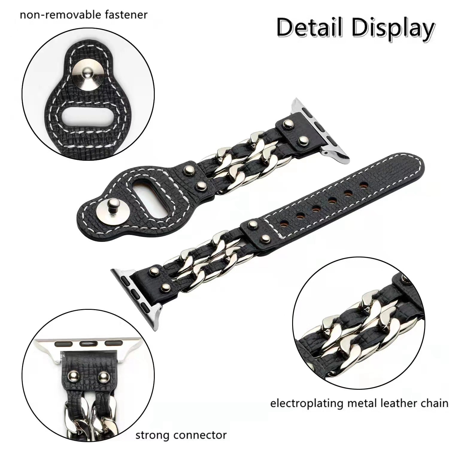 for Apple Watch Series 8 41mm / Series 7 41mm / SE / SE(2022) / Series 4 / 5 / 6 40mm / Series 1 / 2 / 3 38mm Metal Chain Watch Band Top Layer Cowhide Leather Replacement Wrist Strap - Black