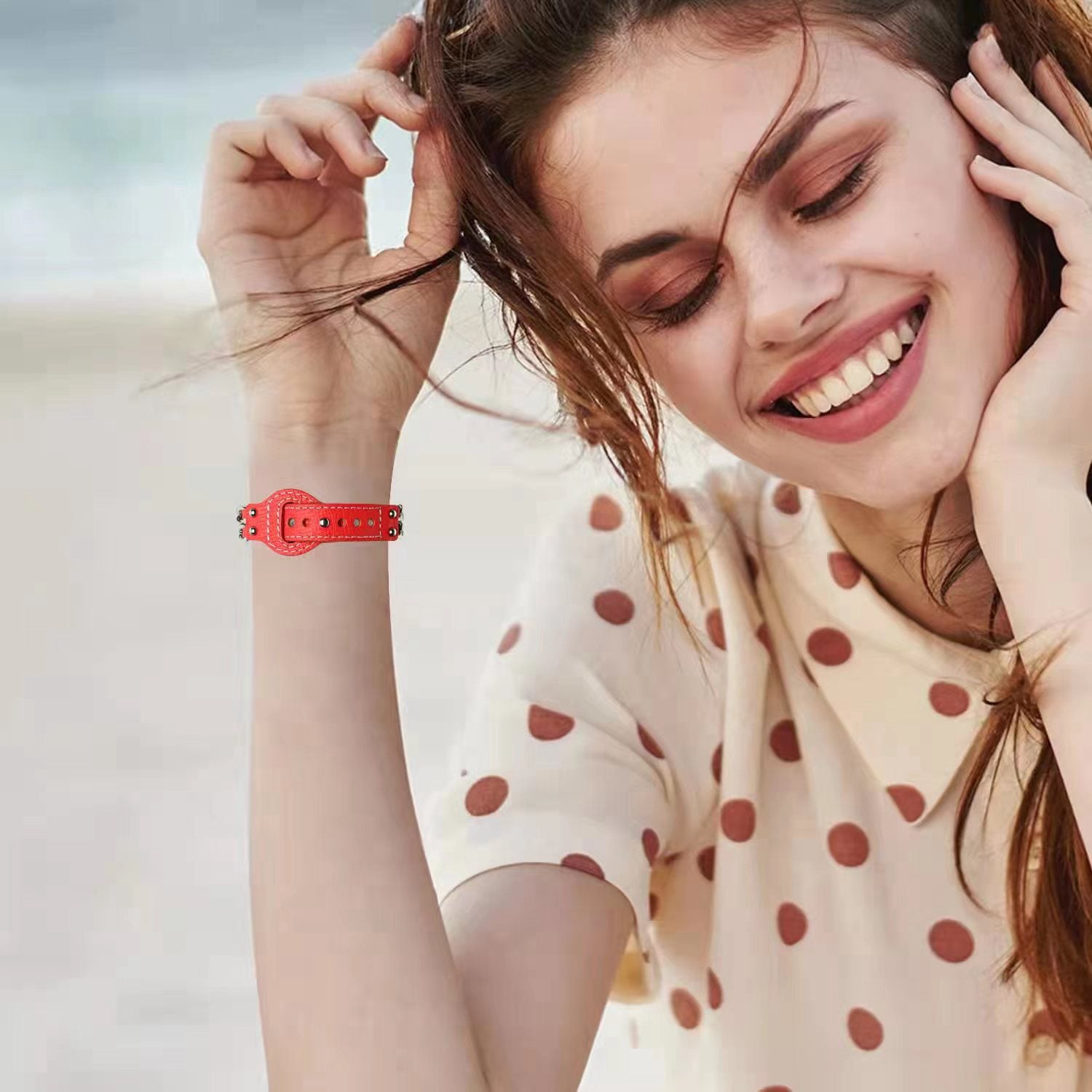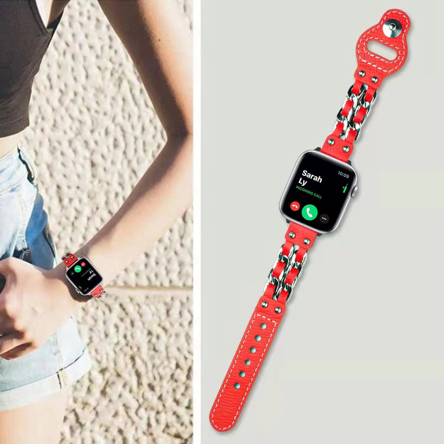 for Apple Watch Series 8 41mm / Series 7 41mm / SE / SE(2022) / Series 4 / 5 / 6 40mm / Series 1 / 2 / 3 38mm Metal Chain Watch Band Top Layer Cowhide Leather Replacement Wrist Strap - Pink
