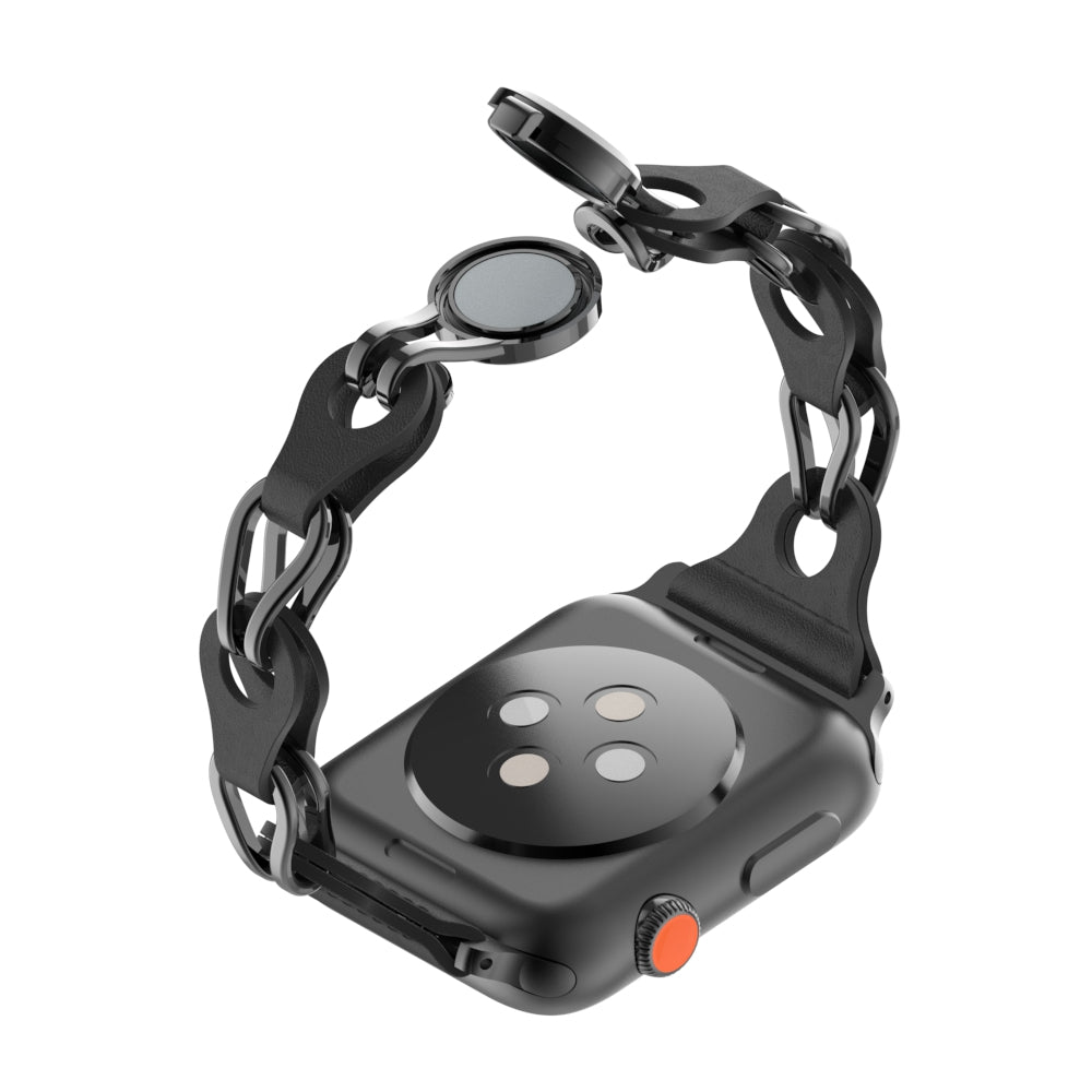 Uniqkart for Apple Watch Series 8 7 41mm  /  6 5 4 SE (2022) SE 40mm  /  3 2 1 38mm Stainless Steel+Leather Chain Strap Magnetic Buckle Watch Band - Black
