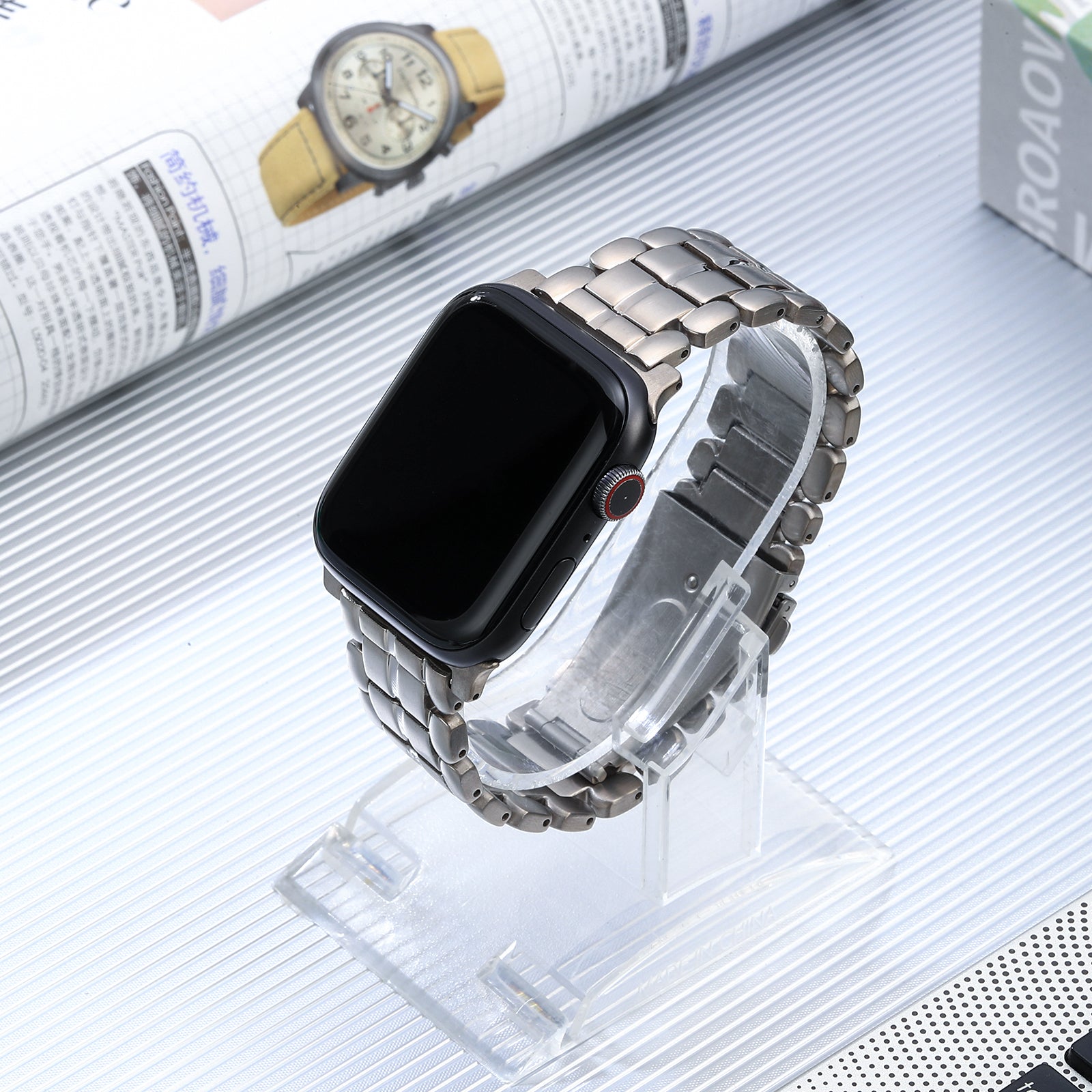 For Apple Watch Series 8 / 7 41mm / 6 / 5 / 4 / SE / SE (2022) 40mm / 3 / 2 / 1 38mm Replacement Watch Band 5 Beads Titanium Steel Strap - Silver