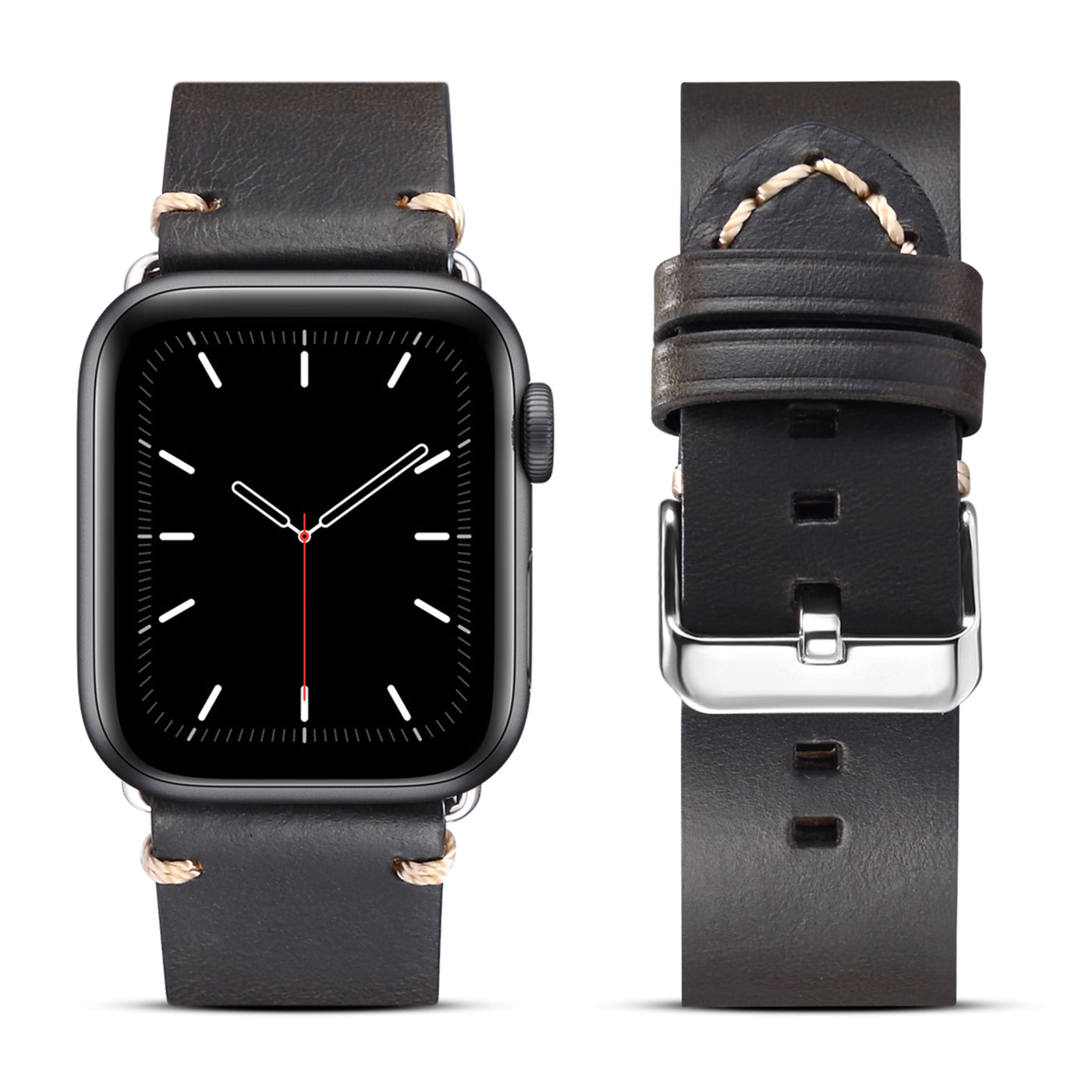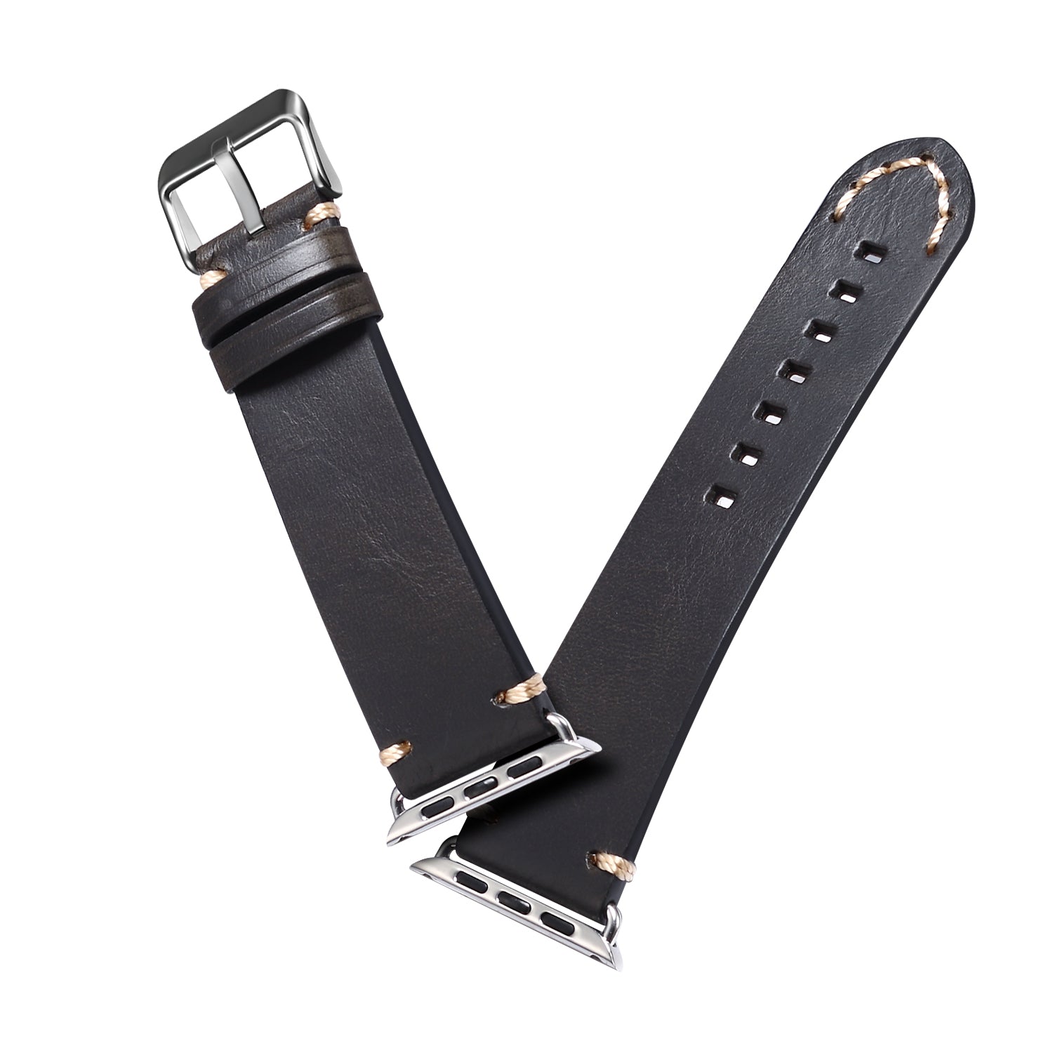 for Apple Watch Series 8 Aluminum / 8 / 7 45mm / Series 6 / 5 / 4 / SE / SE (2022) 44mm / Series 3 / 2 / 1 42mm DOL Waxy Cowhide Leather Watch Band Adjustable Pin Buckle Wrist Strap Replacement - Black