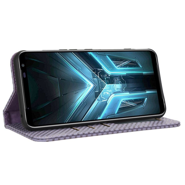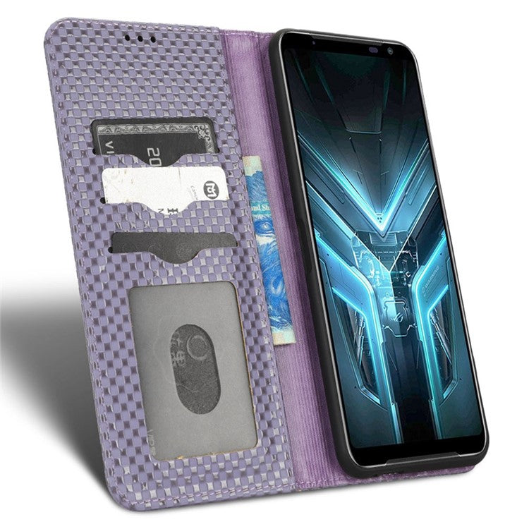 For Asus ROG Phone 3 Strix / ROG Phone 3 ZS661KS Grid Texture PU Leather Magnetic Auto-absorbed Phone Case with Wallet Stand - Light Purple