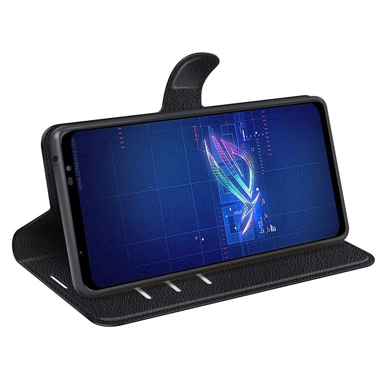 For Asus ROG Phone 6 5G Anti-wear Litchi Texture Flip Phone Case Well-protected PU Leather Wallet Stand Feature Cover - Black