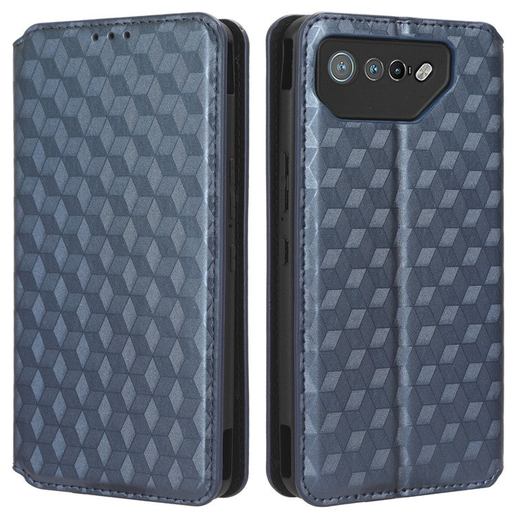 For Asus ROG Phone 7 5G Cell Phone Case Imprinted Rhombus PU Leather Wallet Stand Flip Cover - Blue