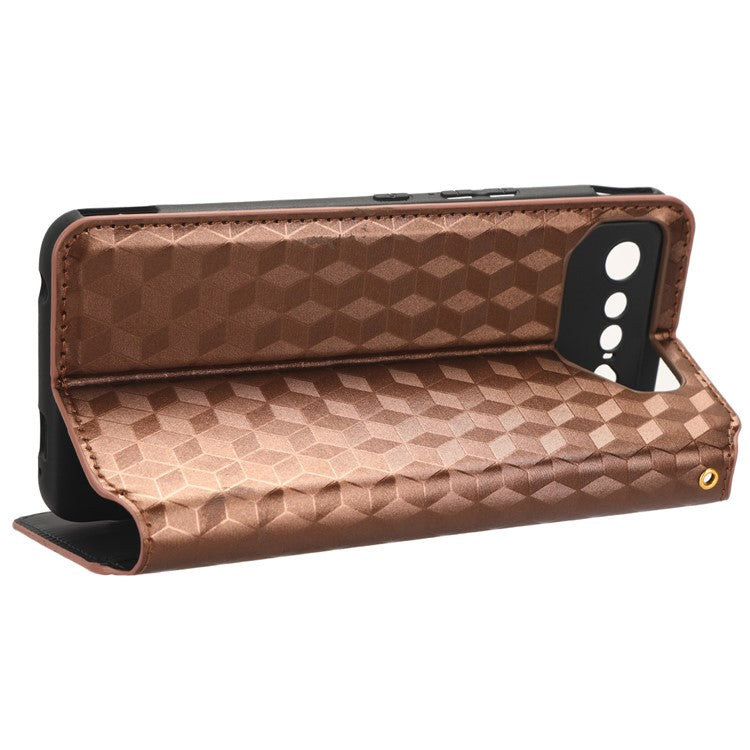 For Asus ROG Phone 7 5G Cell Phone Case Imprinted Rhombus PU Leather Wallet Stand Flip Cover - Brown