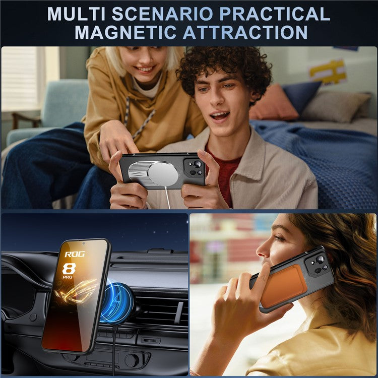For Asus ROG Phone 8 5G / Phone 8 Pro 5G Magnetic Case Heat Dissipation Aromatherapy Kickstand Silicone+PC Phone Cover - Silver