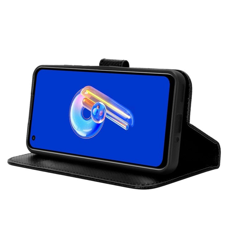 For Asus Zenfone 10 5G / 9 5G Diamond Texture Phone Flip Wallet Case Anti-shock Scratch-resistant PU Leather Cell Phone Cover with Strap - Black