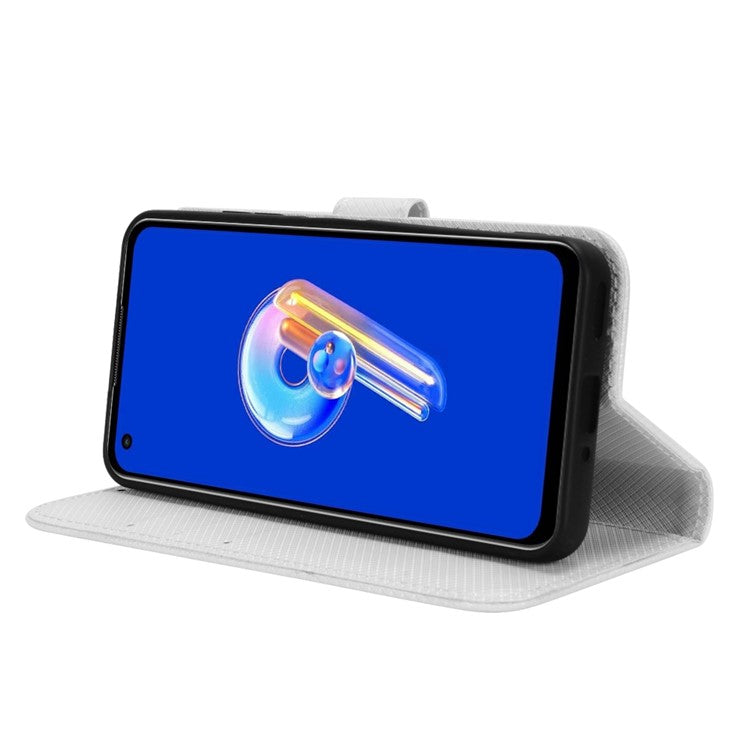 For Asus Zenfone 10 5G / 9 5G Diamond Texture Phone Flip Wallet Case Anti-shock Scratch-resistant PU Leather Cell Phone Cover with Strap - White