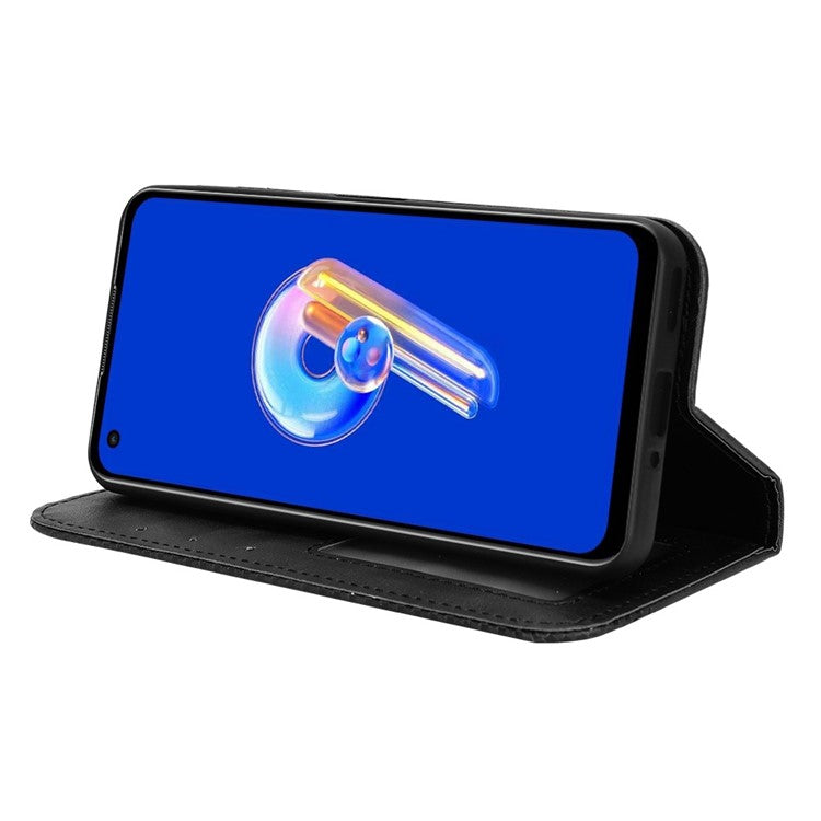 For Asus Zenfone 10 5G / 9 5G Vintage PU Leather Shockproof Mobile Phone Case Stand Auto Absorbed Shell with Wallet - Black