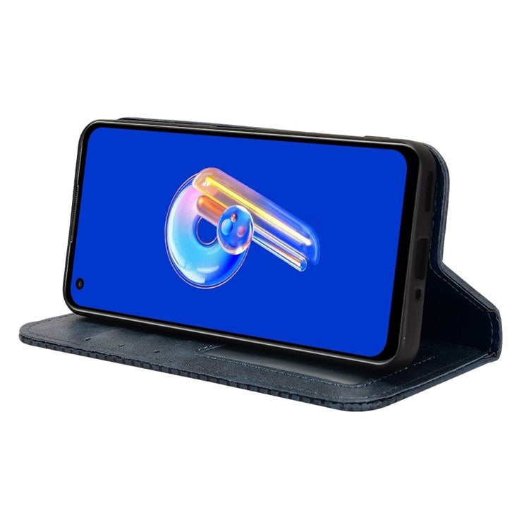 For Asus Zenfone 10 5G / 9 5G Vintage PU Leather Shockproof Mobile Phone Case Stand Auto Absorbed Shell with Wallet - Blue