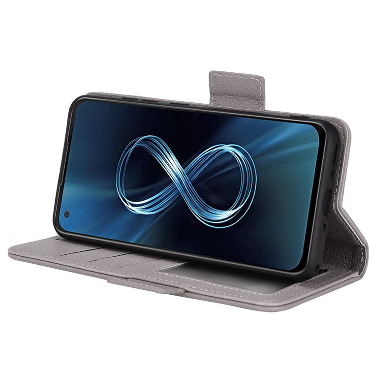 For Asus Zenfone 8 ZS590KS / Zenfone 8Z Litchi Texture Leather Phone Case PU Leather Protective Cover Stand Wallet - Grey