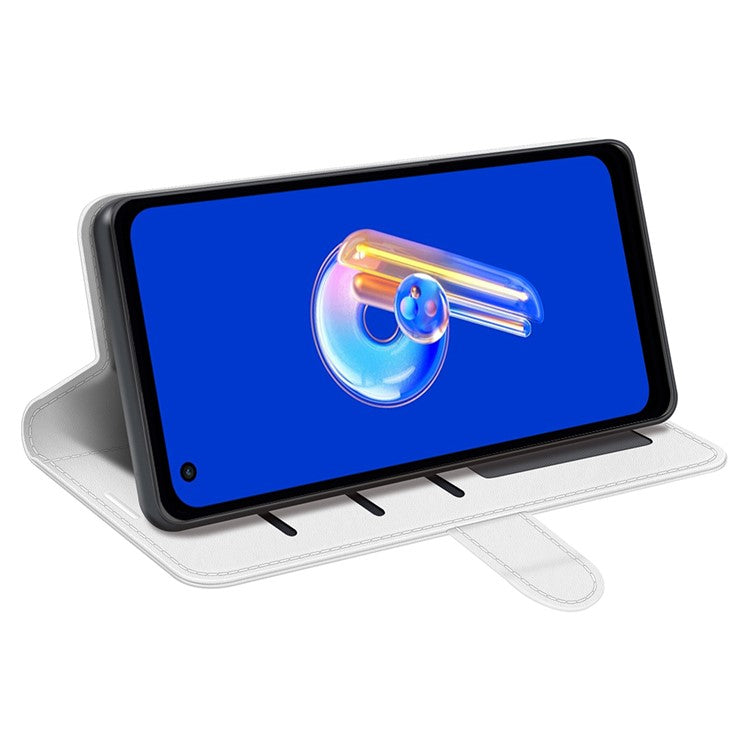 For Asus Zenfone 9 5G Book Style Phone Case PU Leather Crazy Horse Texture Wallet Stand Well Protection Cover - White