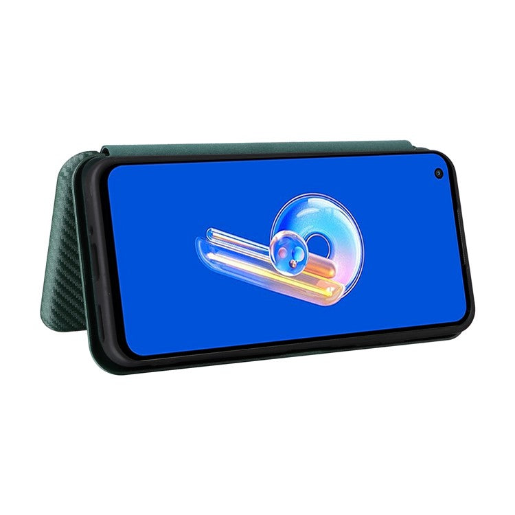 For Asus Zenfone 9 5G PU Leather Carbon Fiber Texture Phone Stand Case Card Slot Design Auto-absorbed Magnetic Protective Cover - Green