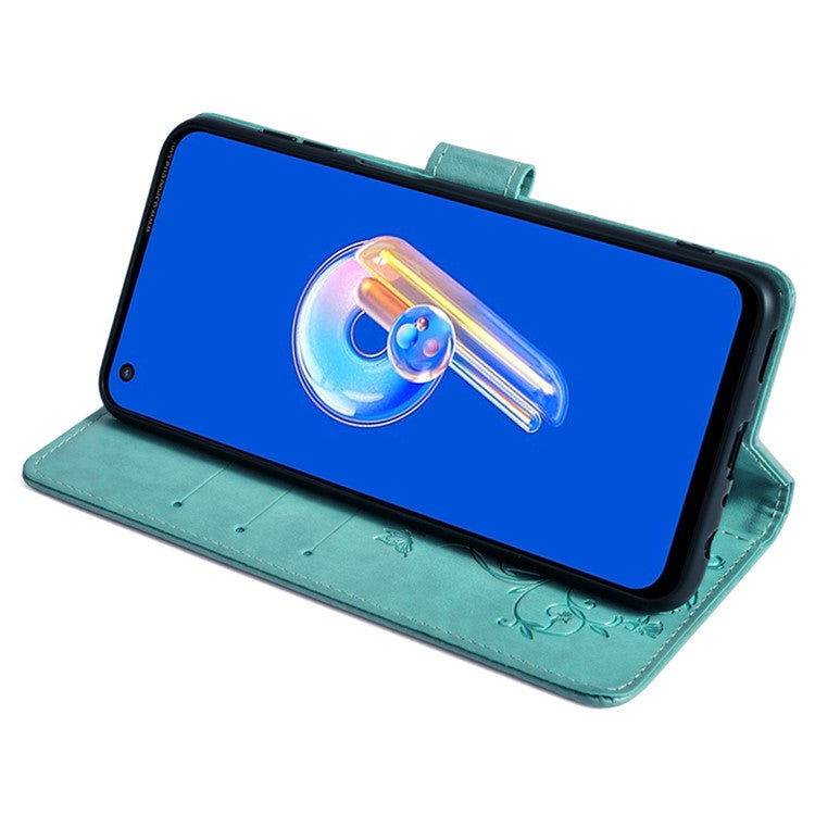 For Asus Zenfone 9 5G / Zenfone 9z Case Butterfly Flower Imprinted PU Leather Wallet Protective Phone Cover - Green
