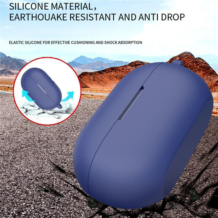 For Beats Solo Buds Silicone Case Anti-scratch Bluetooth Headphone Cover with Hanging Buckle - Dark Blue