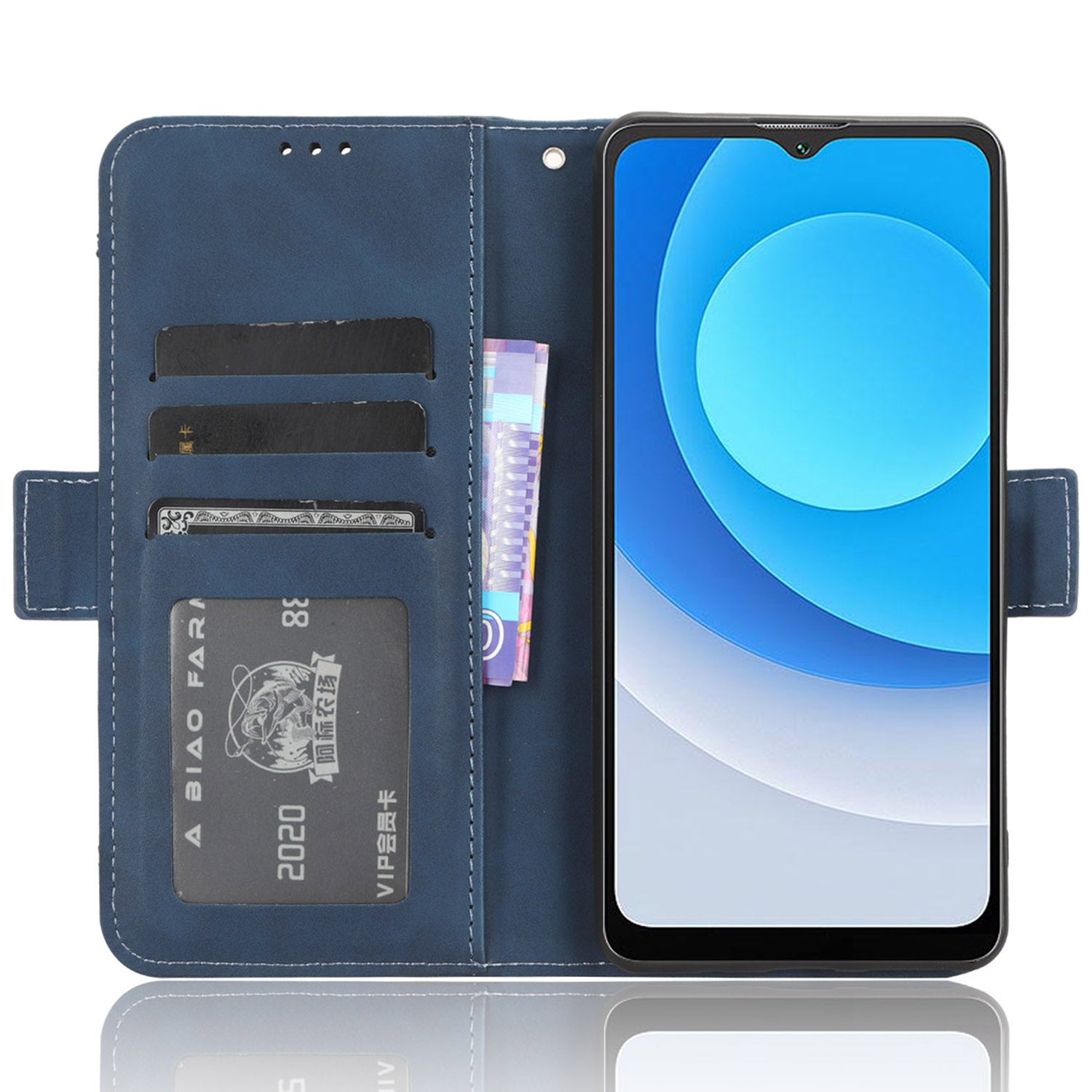 Uniqkart for Blackview Oscal C30 / Oscal C30 Pro Multiple Card Slots PU Leather Case Wallet Phone Stand Cover - Blue