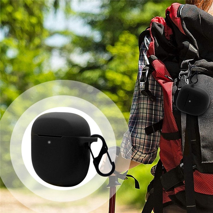 For Bose Quiet Comfort Earbuds II Protective Case Wireless Noise-canceling Headset Silicone Cover with Anti-Loss Hanging Buckle - Black