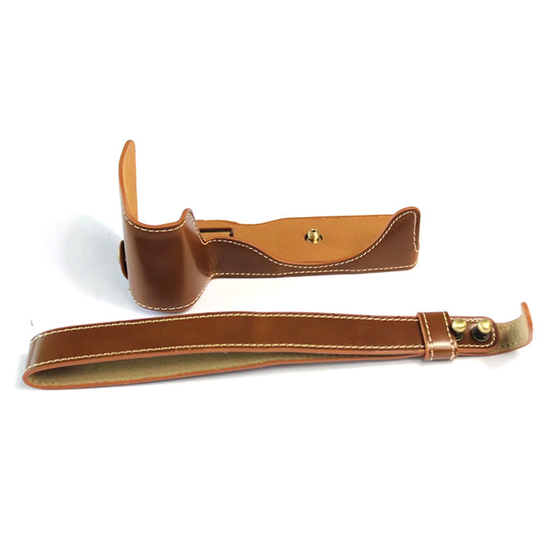 Uniqkart for Canon EOS RP PU Leather Camera Bottom Case with Hand Strap, Battery Opening Design Half Body Protective Cover - Brown