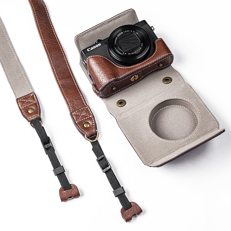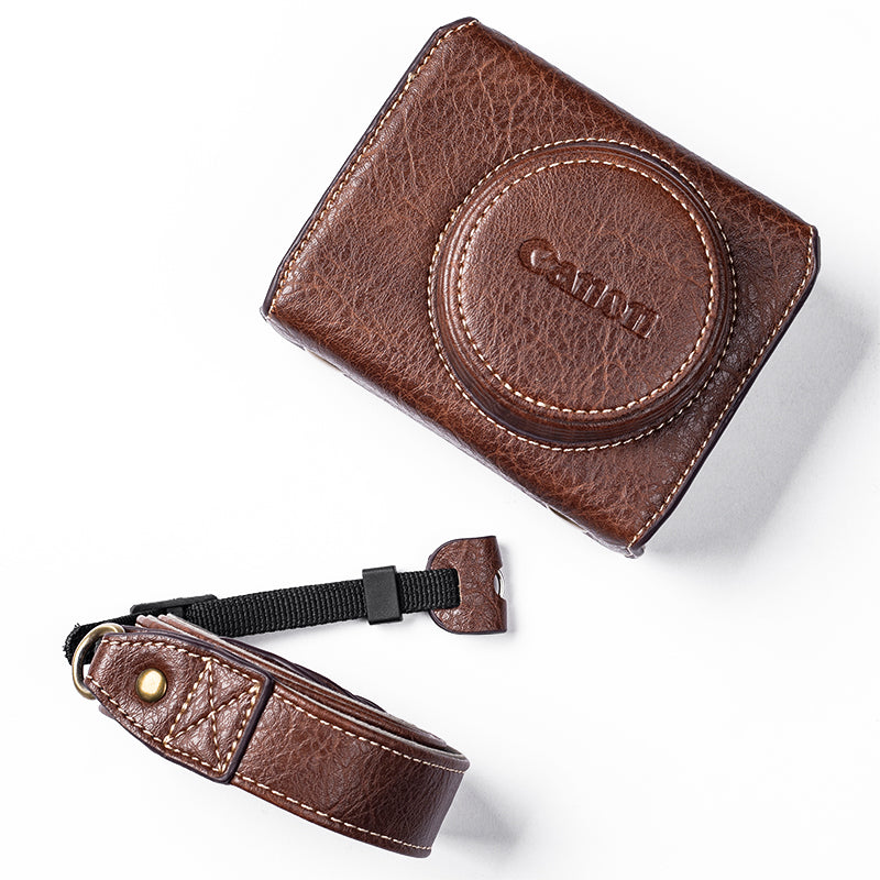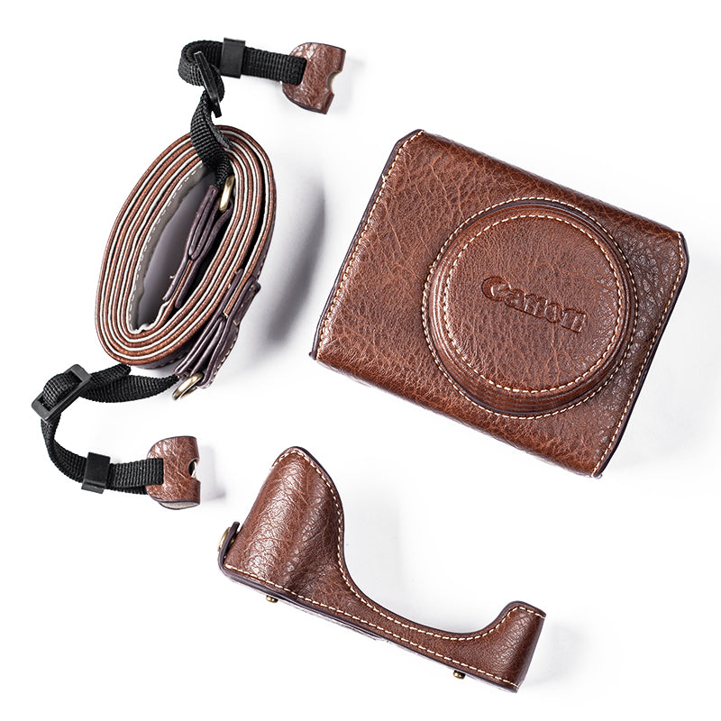 for Canon G7 X Mark III/G7 X Mark II Detachable PU Leather Camera Bag Battery Opening Design Protective Cover with Shoulder Strap - Buffalo Texture / Coffee