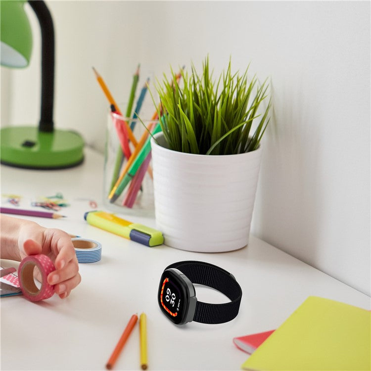For Fitbit Ace LTE Children Watch Watchband Round Tail Braided Nylon Wrist Strap - Azure Blue