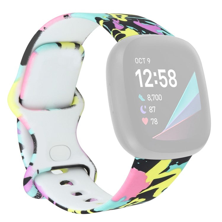 For Fitbit Versa 4 / Sense 2 Pattern Printing Silicone Watch Strap Adjustable Wrist Band Replacement - Style E