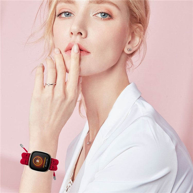 For Fitbit Versa 4 / Sense 2 Smart Watch Band Adjustable Braided Wrist Strap - Red