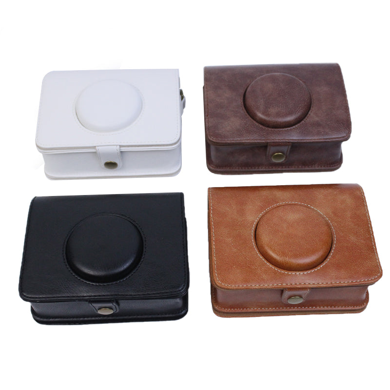 Uniqkart for Fujifilm Instax Mini Evo Horizontal Vintage PU Leather Camera Case Camera Bag with Shoulder Strap - White