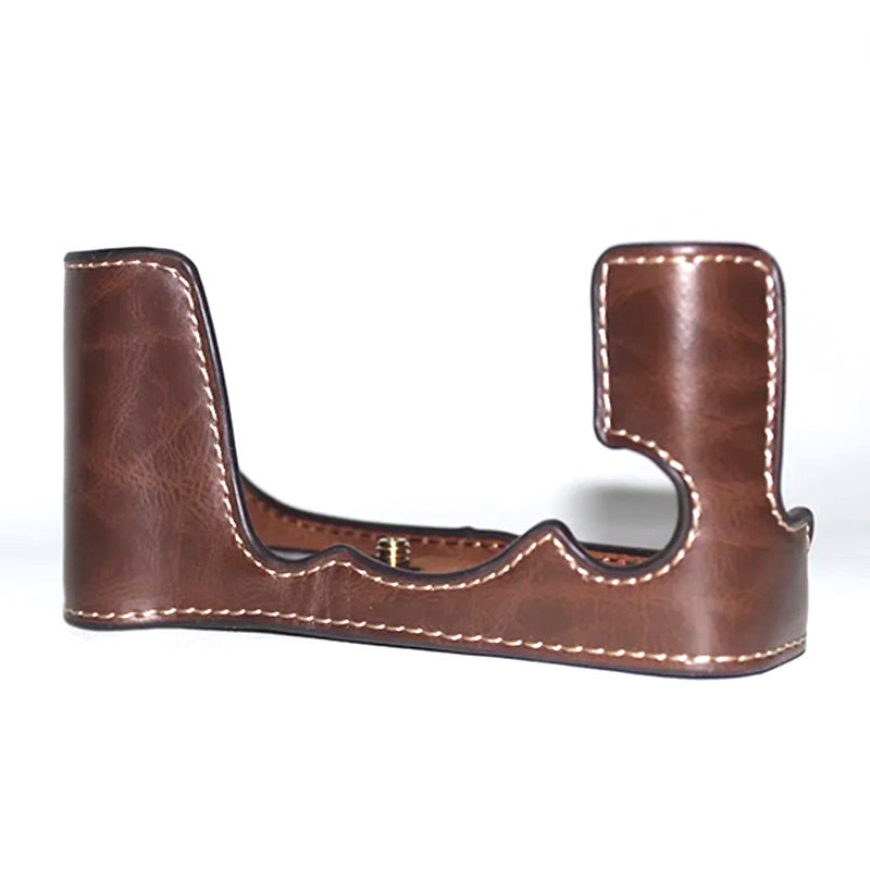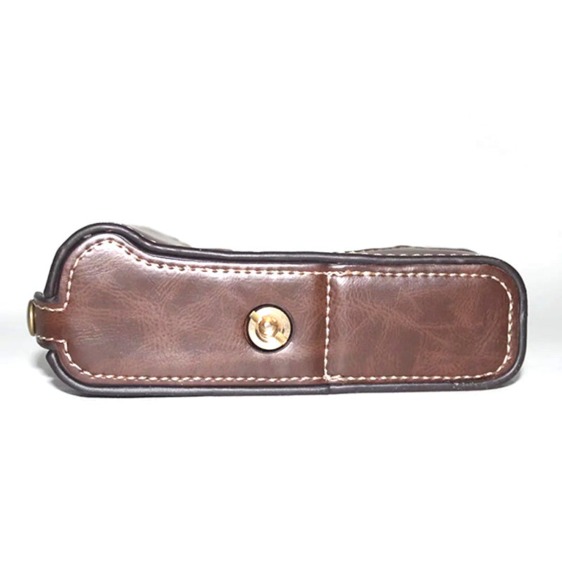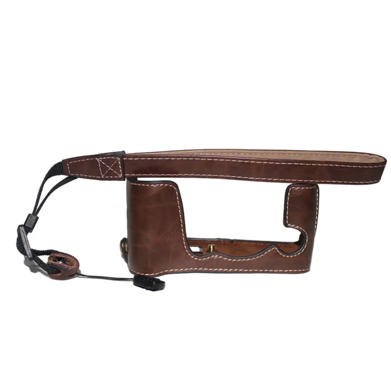 Uniqkart for Fujifilm X-E3 Camera PU Leather Bottom Case Battery Opening Design Half Body Protective Cover with Hand Strap - Coffee