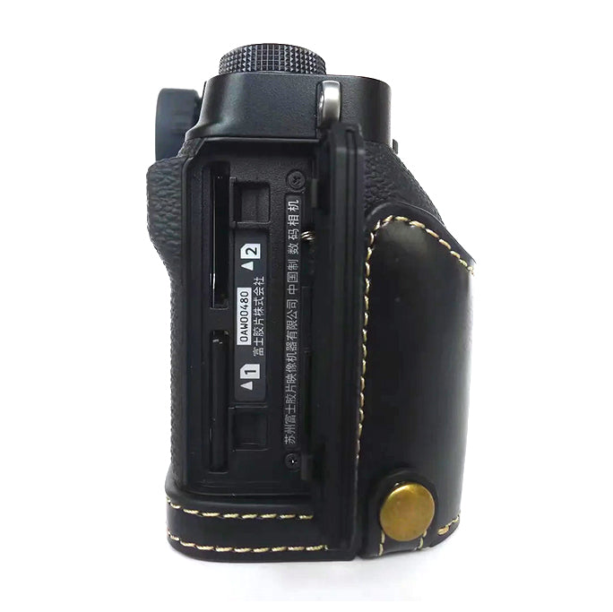 Uniqkart for Fujifilm X-T4 Digital Camera PU Leather Protective Bottom Case Anti-scratch Half Body Cover with Battery Opening - Black