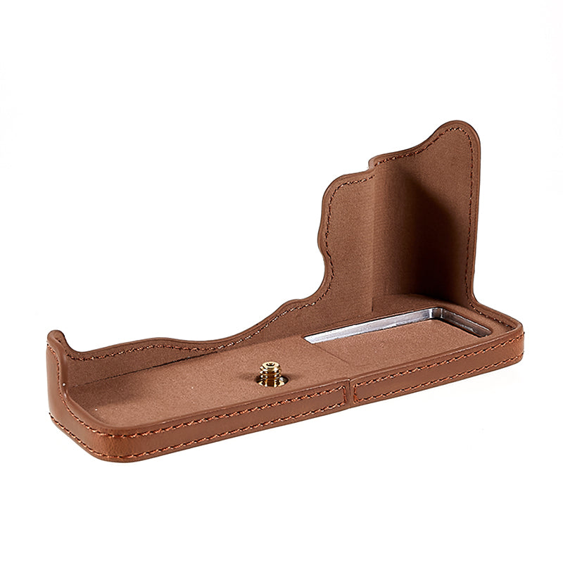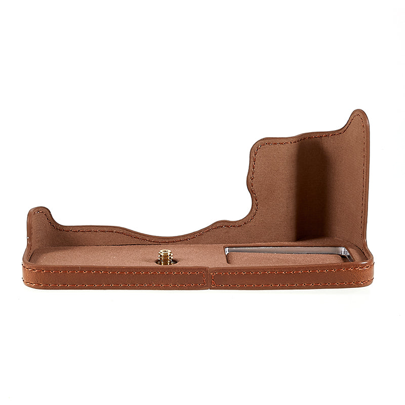 Uniqkart for Fujifilm XT4/X-T4 PU Leather Camera Bottom Case Protective Half Body Cover with Battery Opening - Coffee