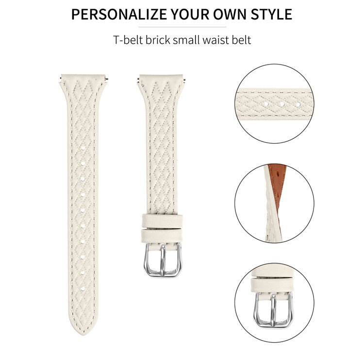 For Garmin Vivomove HR / Vivomove Rhombus Design Top-layer Cow Leather Watch Bracelet Band - Apricot