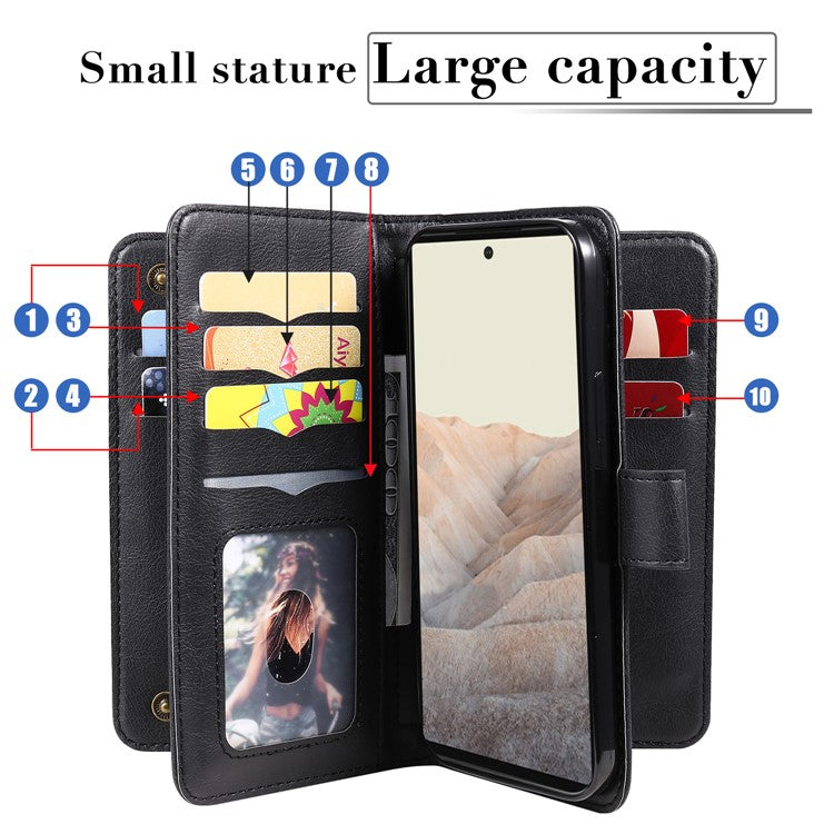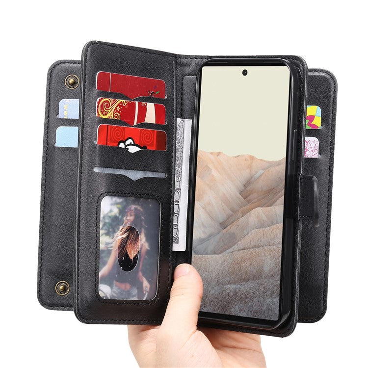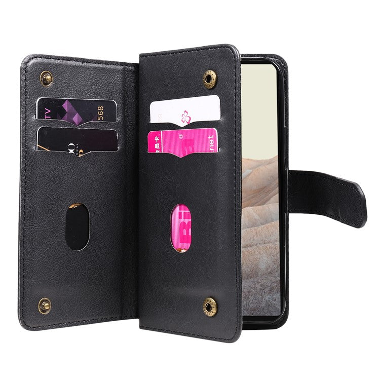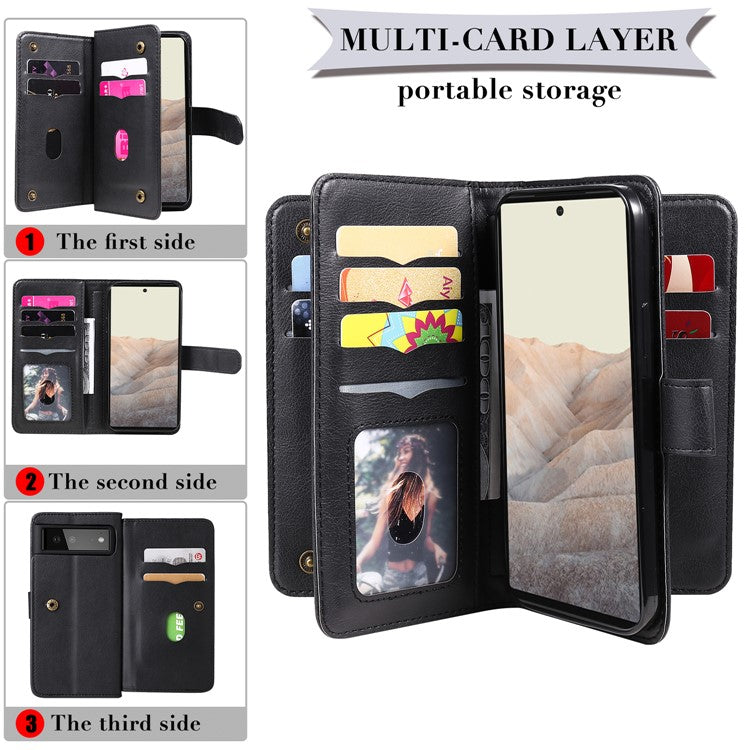 For Google Pixel 6 KT Multi-functional Series-1 PU Leather 10 Card Slots Holder Flip Cover Stand Magnetic Wallet Phone Case - Black