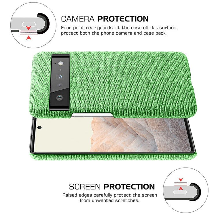 For Google Pixel 6 Pro Cloth Coated Hard PC Shockproof Non-Slip Phone Case Anti-Fingerprints Cover - Green