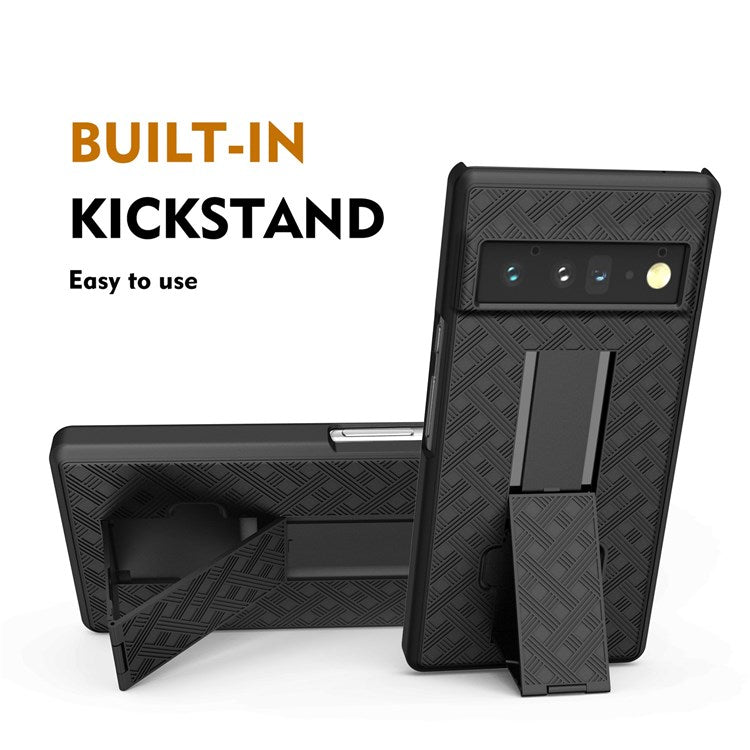 For Google Pixel 6 Pro Screen Sliding Cover Woven Texture PC + TPU Phone Case with Rotary Clip Kickstand