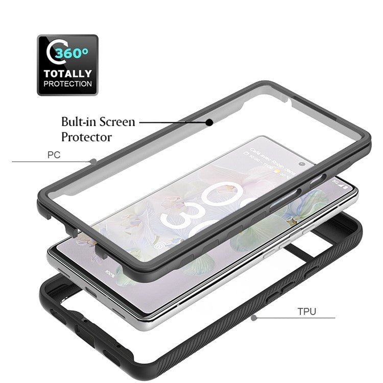 For Google Pixel 6a 3-in-1 Anti-drop Phone Case Hard PC + Soft TPU Hybrid Back Cover with PET Screen Protector - Purple