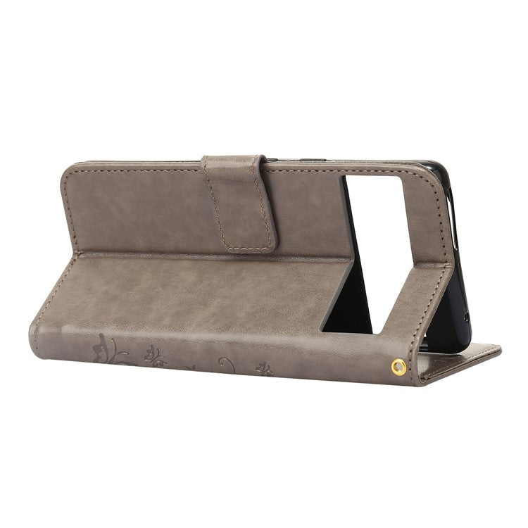For Google Pixel 7 5G Anti-scratch Dustproof Phone Cover Wallet Stand PU Leather Imprinting Flower Butterflies Cell Phone Case - Grey